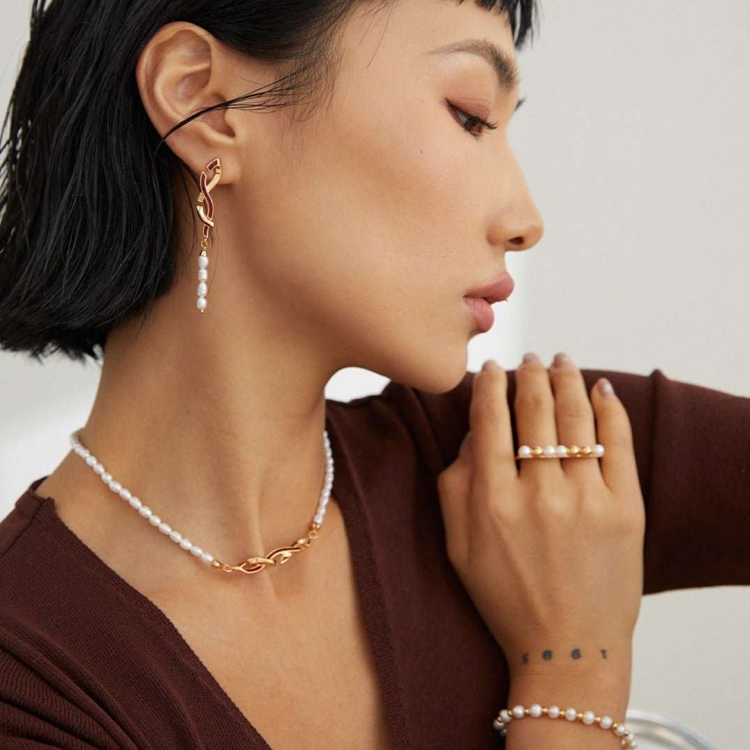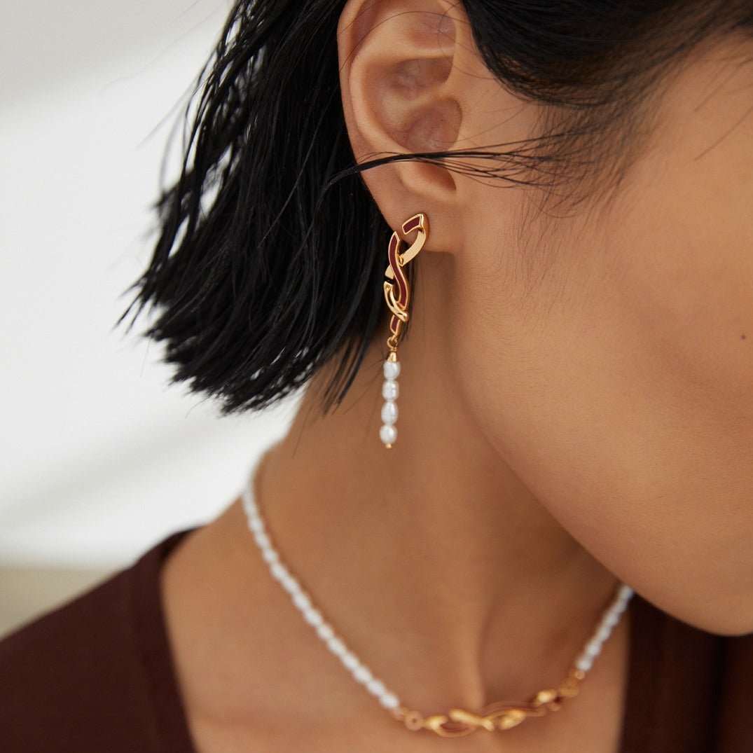 Découvrez le mélange harmonieux de créativité et de savoir-faire avec notre collection Artistic Fusion. Ces boucles d'oreilles exquises présentent des rubans entrelacés et des motifs géométriques complexes, créant un look frais et captivant. L'ajout de la technique de l'émail en gouttelettes apporte des couleurs vibrantes à la surface du métal, tandis que le prolongement de la perle naturelle ajoute une touche parfaite au design, assurant un ajustement harmonieux une fois décoré. Rehaussez votre style avec ces boucles d'oreilles en argent sterling uniques en leur genre qui mettent en valeur le talent artistique de la fusion de la nature et de la modernité.