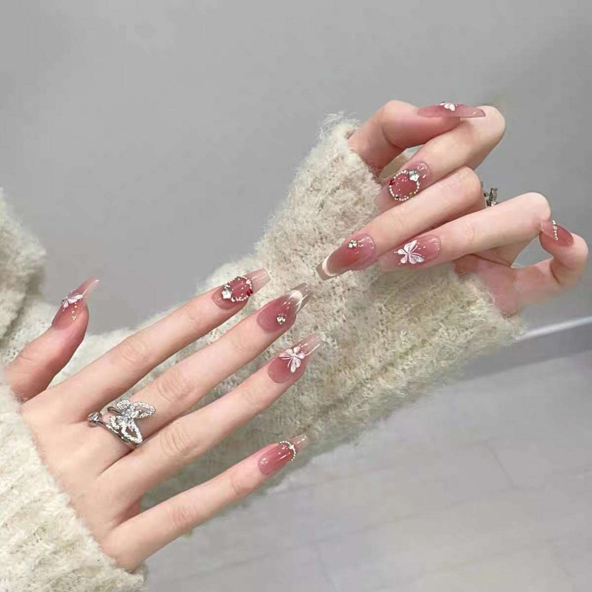 Améliorez votre jeu de manucure avec notre collection [Warm Baby]. Découvrez le mélange parfait de douceur et de sophistication avec notre manucure française œil de chat blush et nos motifs de papillons peints à la main. Achetez maintenant et ajoutez une touche de charme au bout de vos doigts !