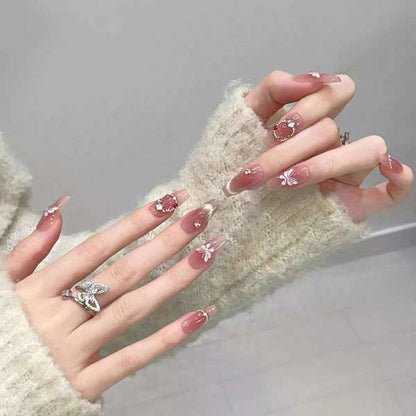 Blush Cat Eye French Manucure et Papillon peint à la main