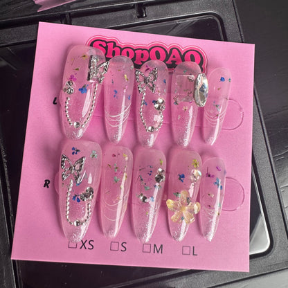 #ShopQAQ #PressOnNails #HandcraftedNails #PrincessNails #AuroraLace #RainbowPolkaDots #IcyTranslucent #ButterflyNails #ExoticDesign #FairyTaleNails