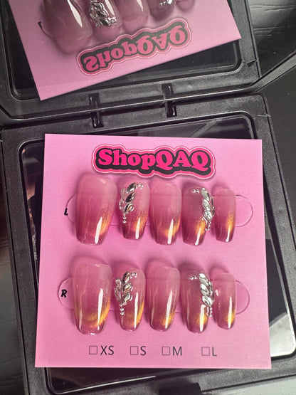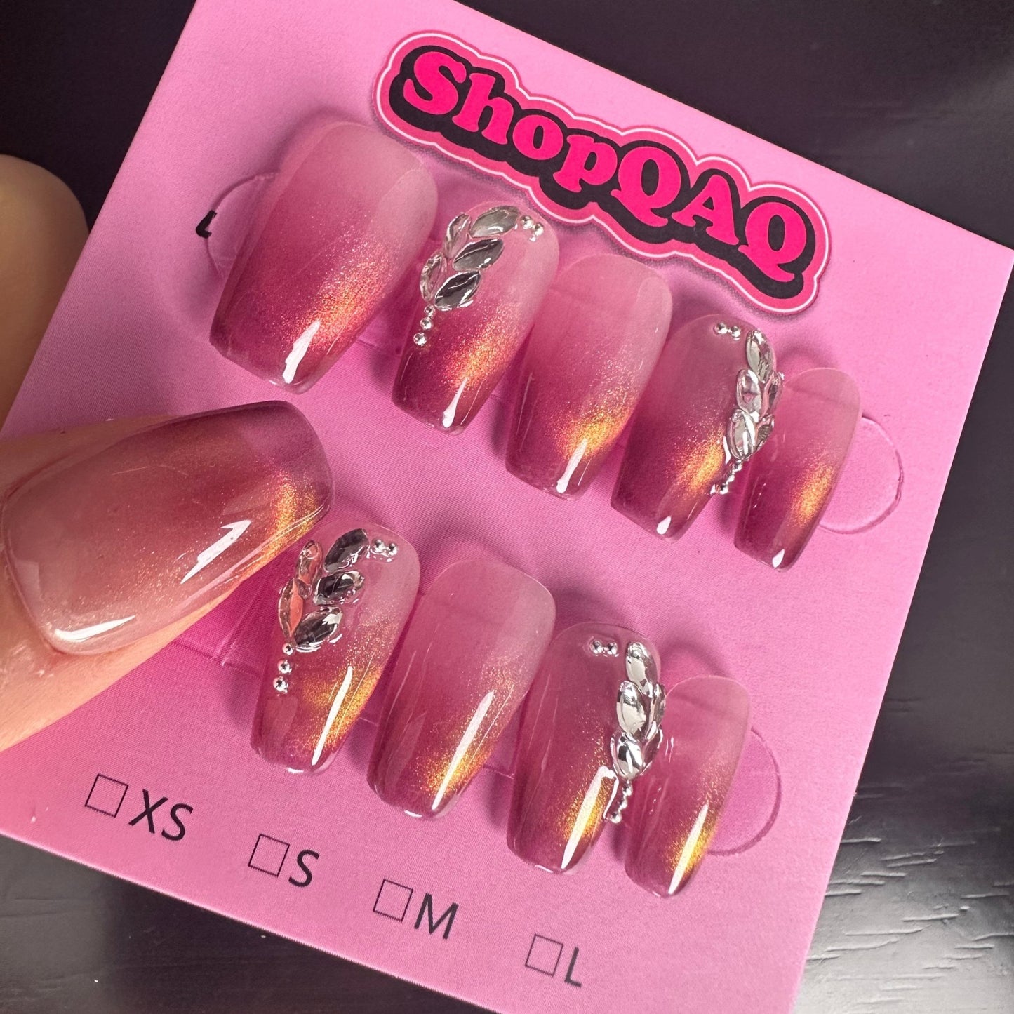 Elevate your look with our Peach Gradient Press-On Nails, meticulously handcrafted to embody a sweet peach gradient with a pure desire vibe. These nails feature a stunning cat eye effect and are perfect for brides, special occasions, or anyone looking to add a touch of elegance to their style.