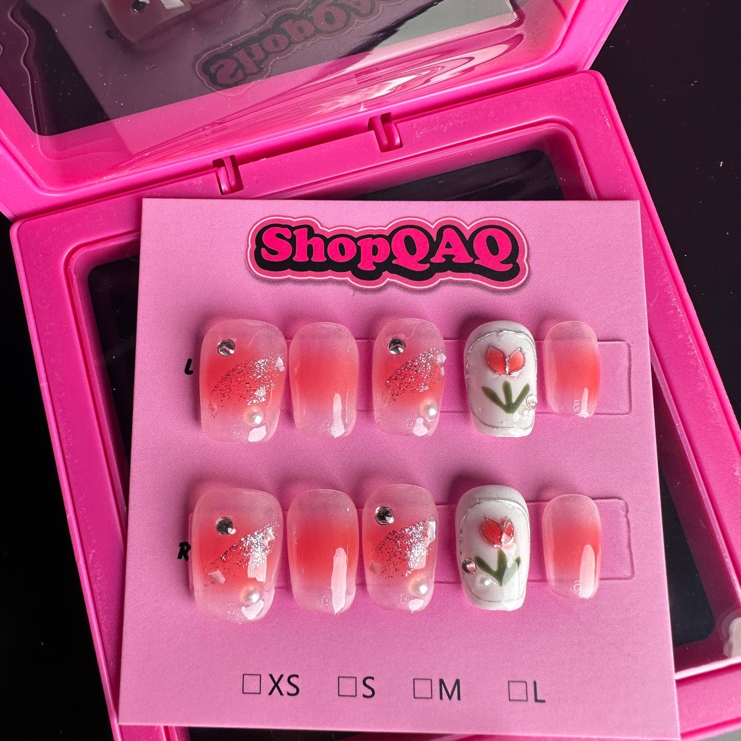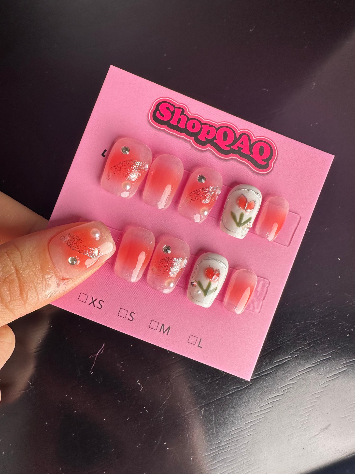 Add a touch of delicate beauty to your look with our Tulip Cherry Blossom Short Press On Nails. These handcrafted nails feature a stunning combination of soft tulip pink and delicate cherry blossom designs, creating a fresh and feminine aesthetic. Perfect for those who love subtle elegance, these short-length nails offer a comfortable and practical option for everyday wear.