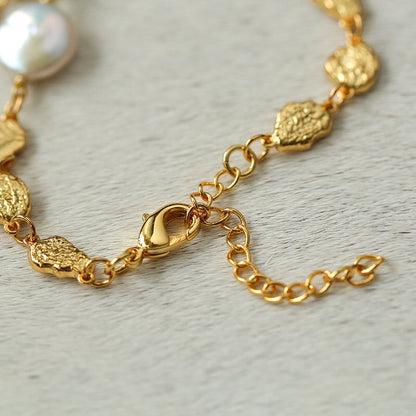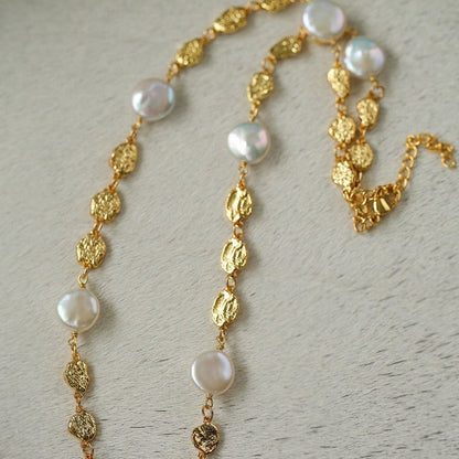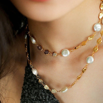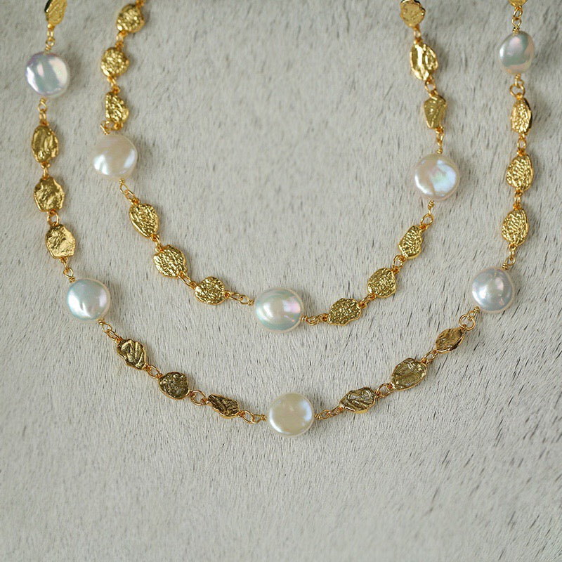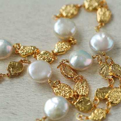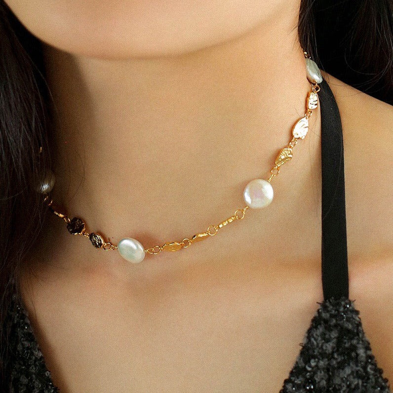 Collier de perles baroques avec bouton de lave et pièce d'or