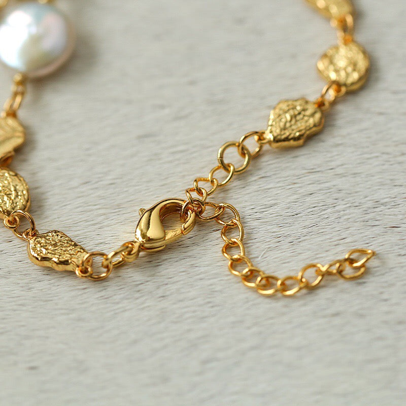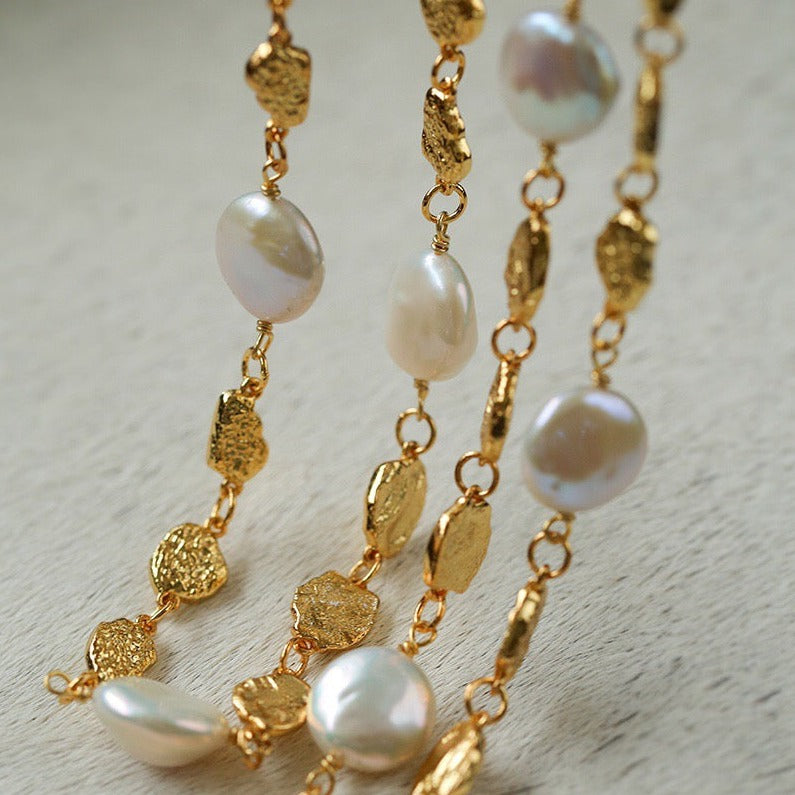 Matière : Cuivre plaqué or 18 carats/perles baroques naturelles