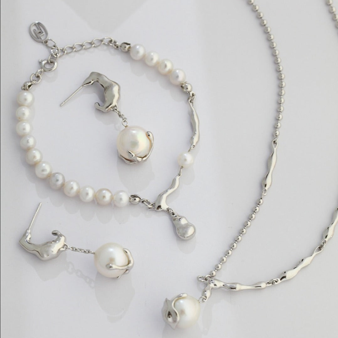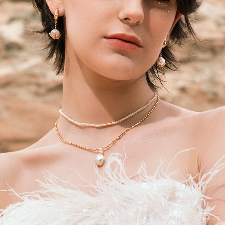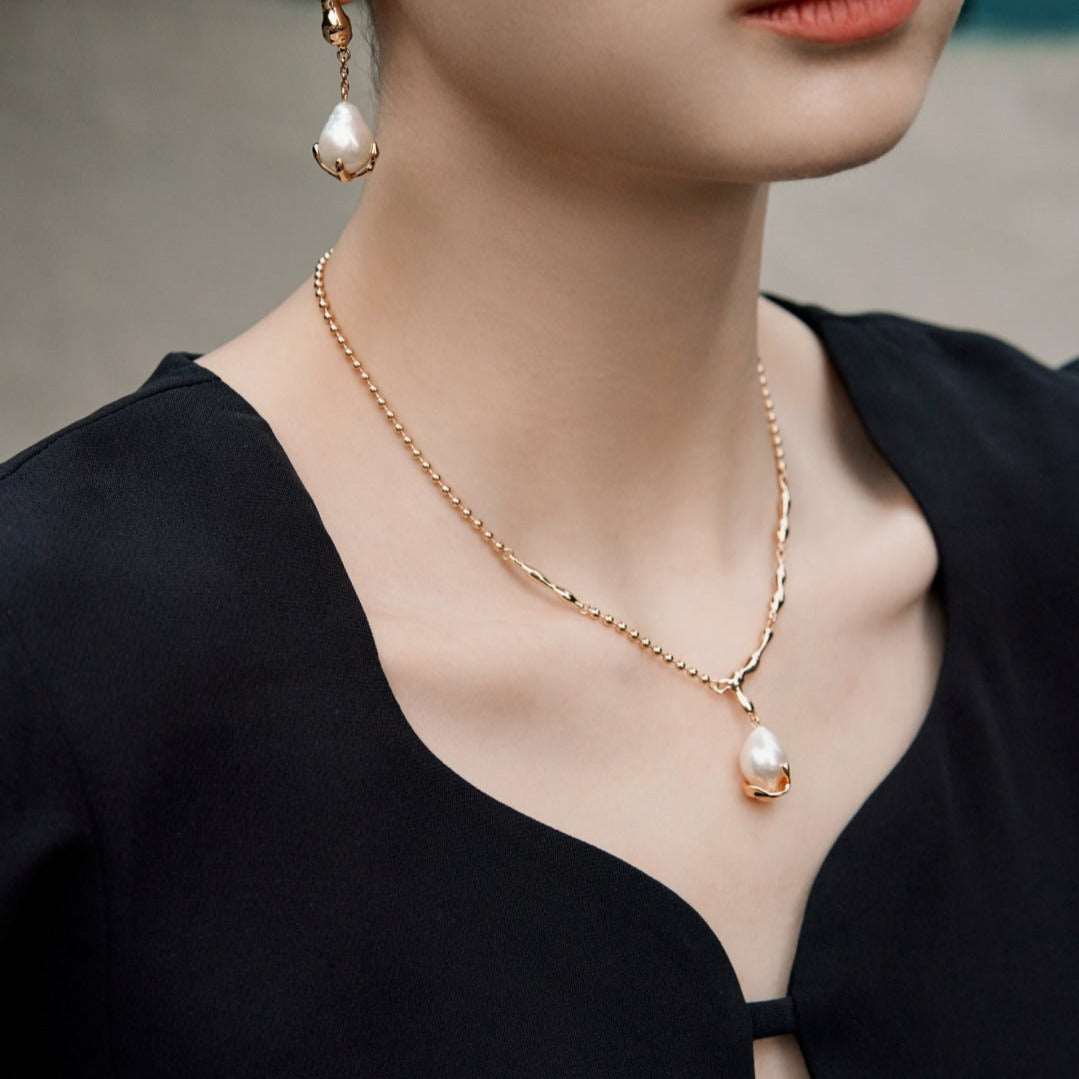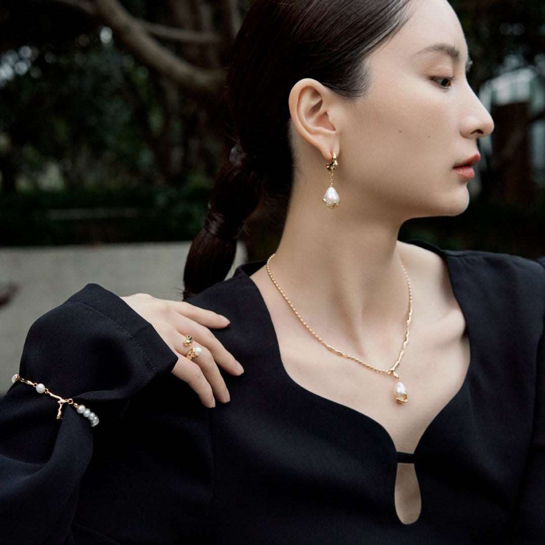 Les perles baroques cultivées naturellement sont associées à des formes fluides conçues avec des éléments naturels. Mélange et entrelacement, c'est naturel.