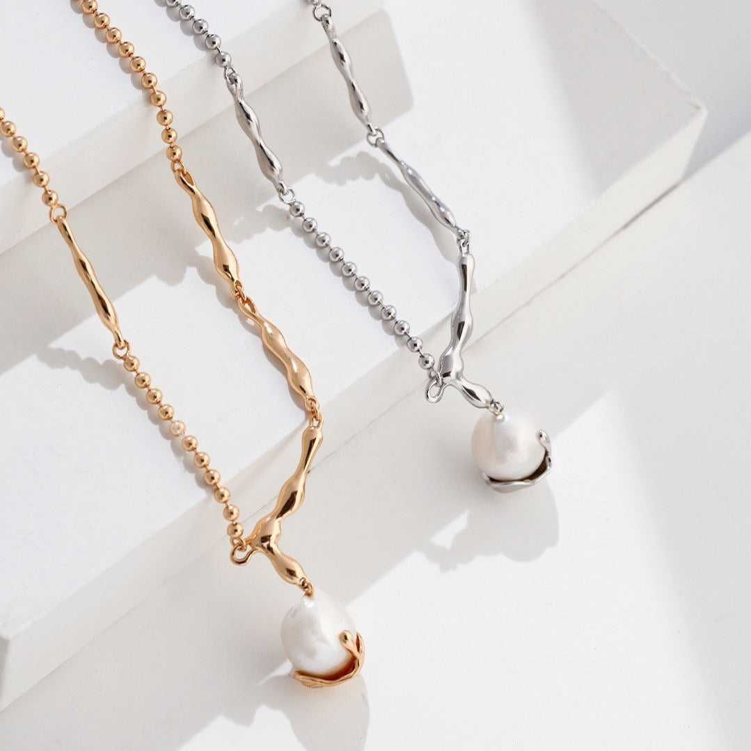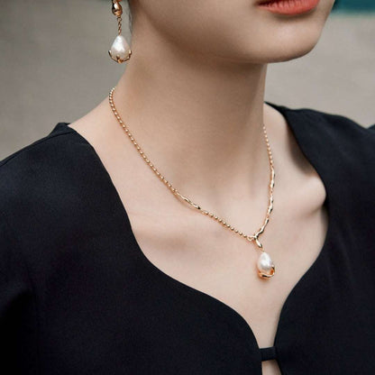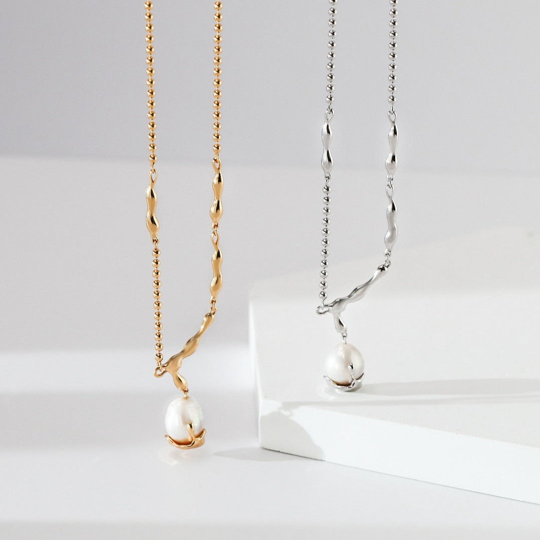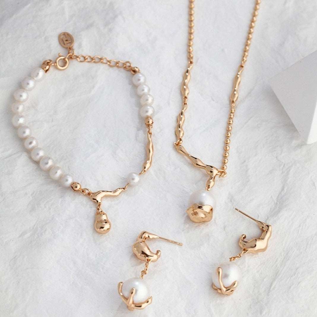 Les perles baroques cultivées naturellement sont associées à des formes fluides conçues avec des éléments naturels. Mélange et entrelacement, c'est naturel.