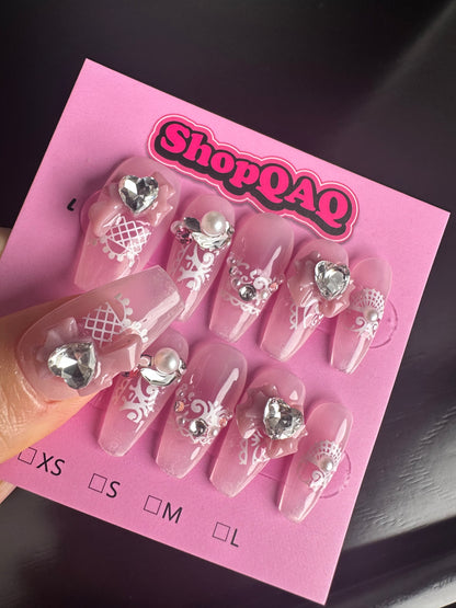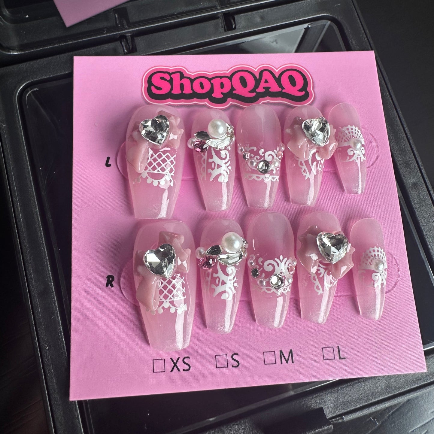 #ShopQAQ #HandcraftedNails #LaceNails #BowNails #HeartNails #CuteNails #SweetNails #ReusableNails #PressOnNails