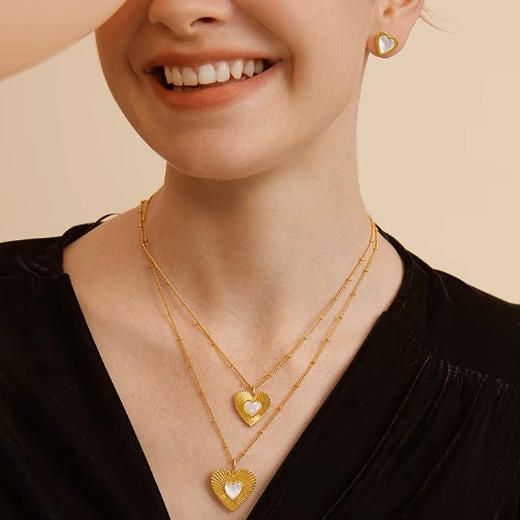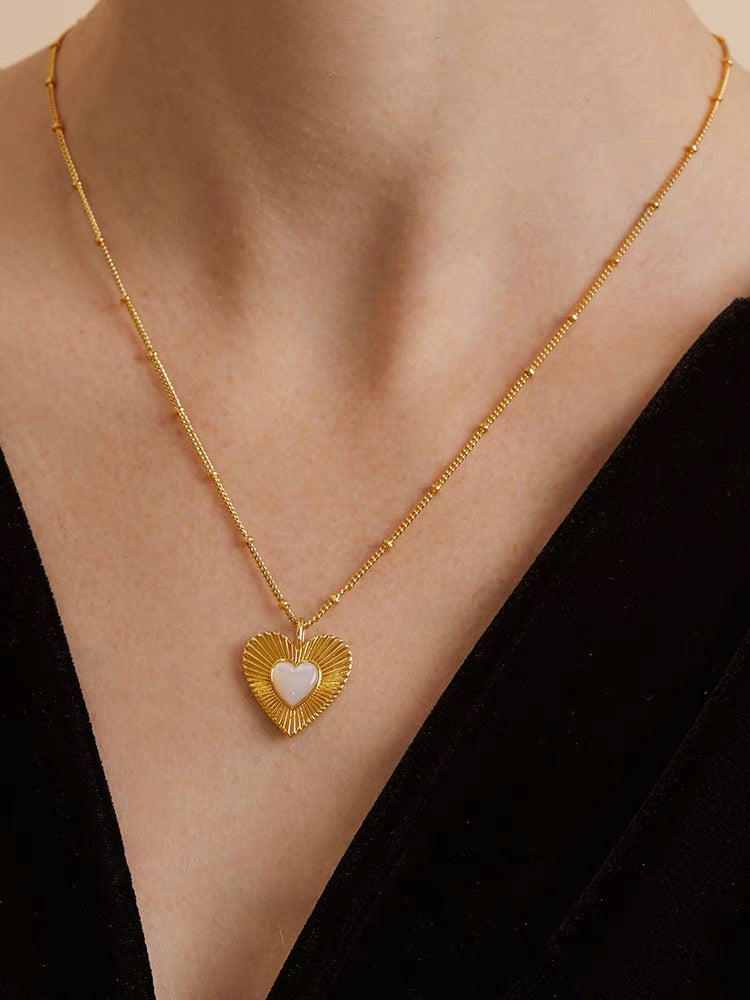 Introducing our Modern Peach Heart Collection: the epitome of elegance and sophistication. Our Peach Heart Mother-of-Pearl Necklace boasts a vintage charm with a contemporary twist, perfect for the fashion-forward woman with discerning taste. Elevate your style with this exquisite piece, showcasing unique design and unparalleled craftsmanship. Make a statement with our Modern Peach Heart Collection today.