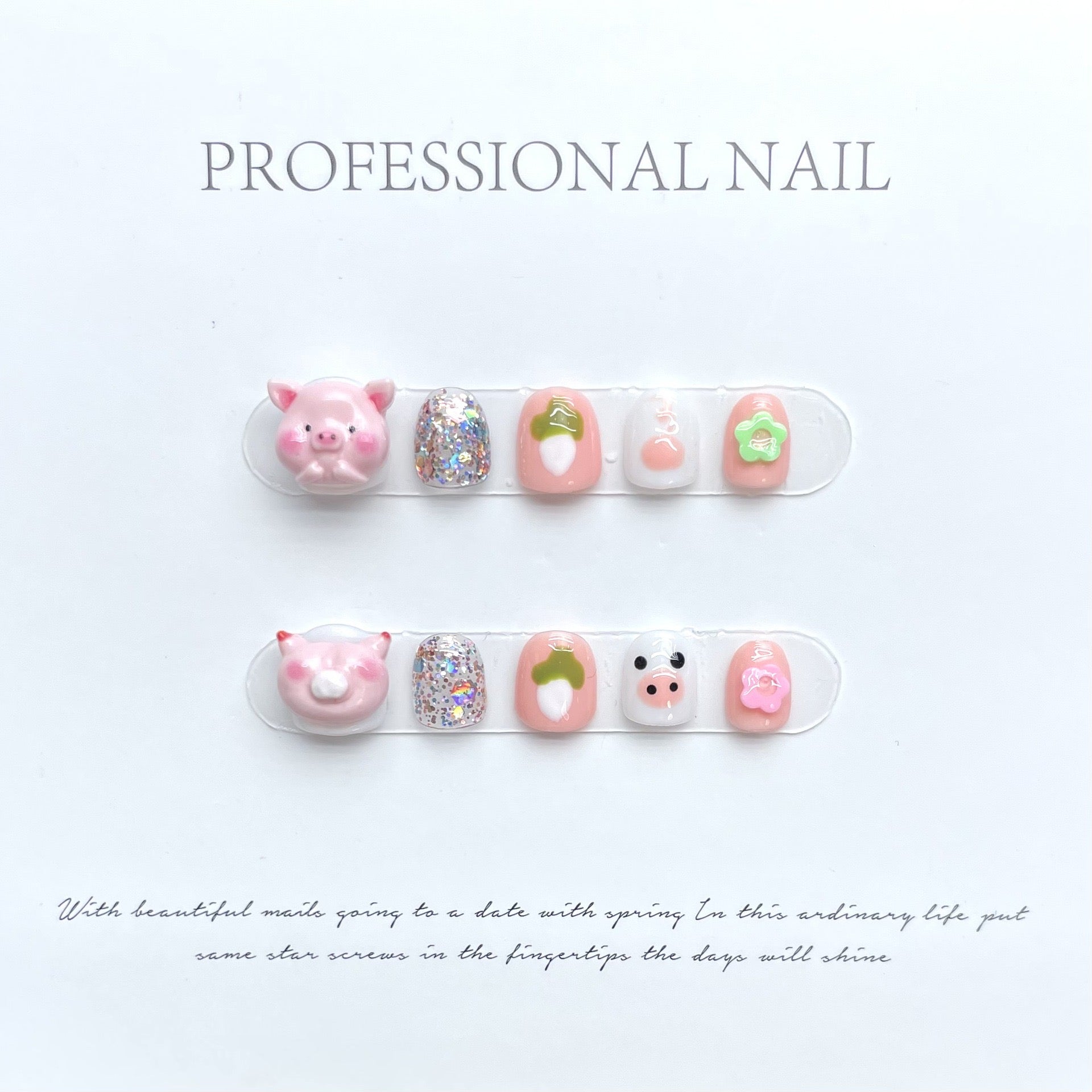 Améliorez le style de votre enfant avec notre collection « Nail Art pour enfants fabriqués à la main » ! Ces adorables autocollants pour ongles sont méticuleusement fabriqués à la main et présentent de ravissants motifs de charmants petits cochons et de chou blanc frais, qui captiveront à coup sûr le cœur des petites filles amoureuses de dessins animés.