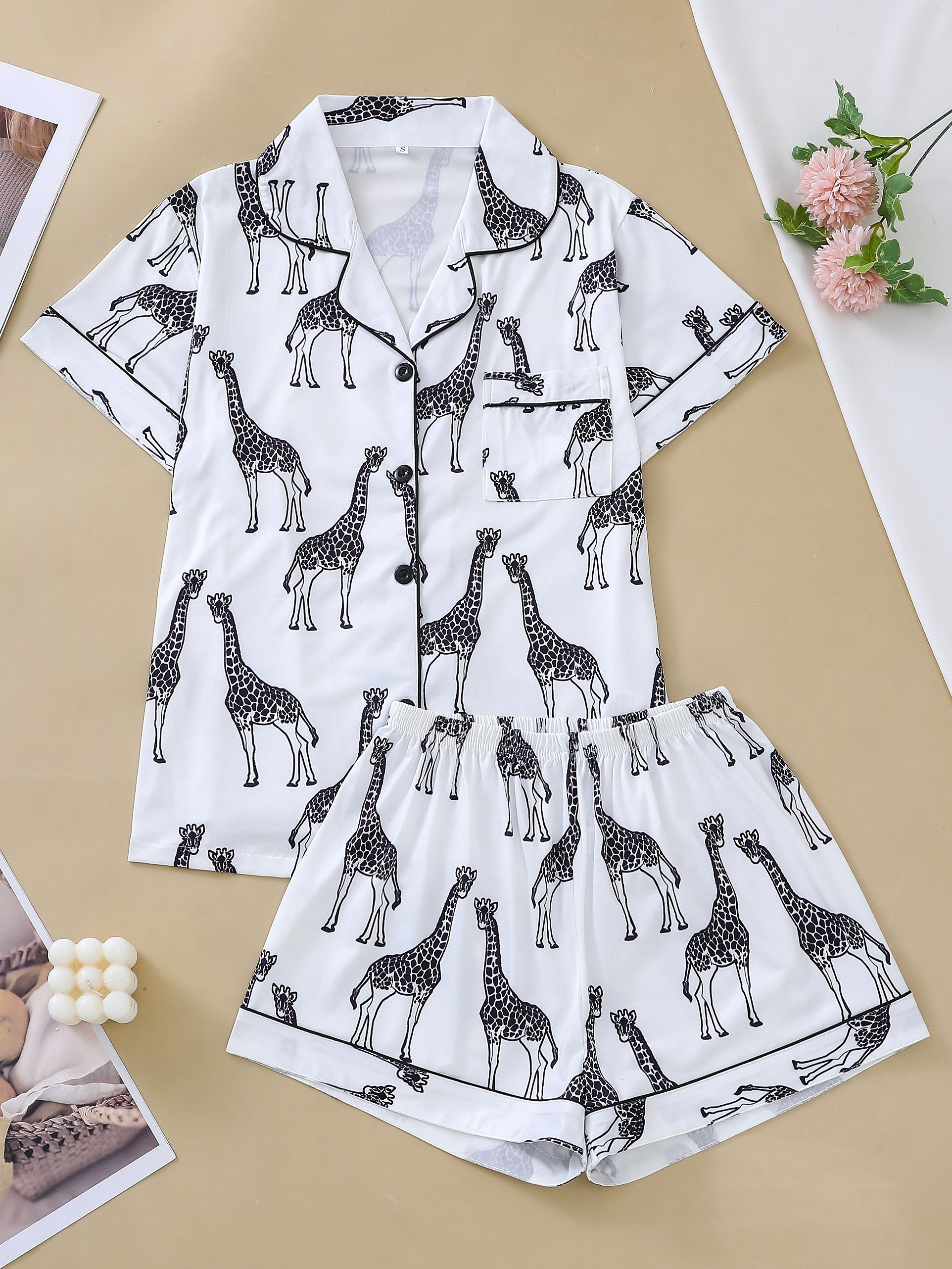 Silk‑Touch Modal Pajama Set — Short‑Sleeve Button Top + Elastic‑Waist Shorts