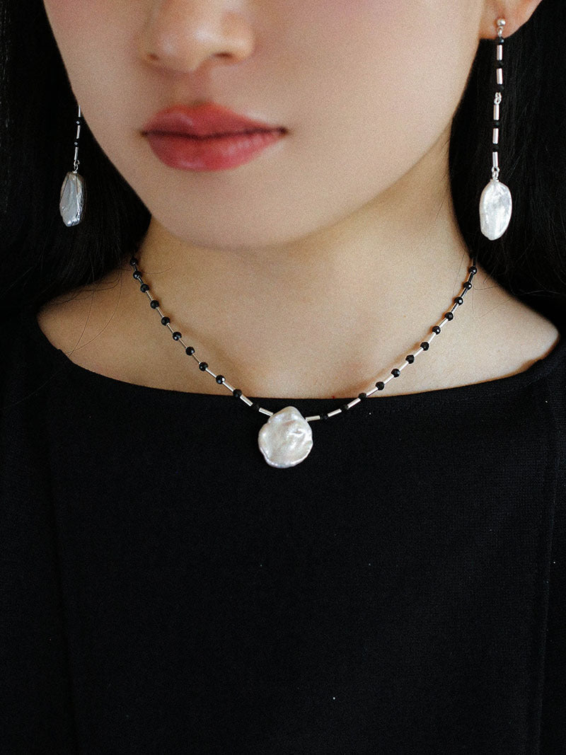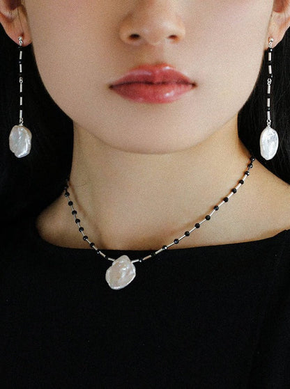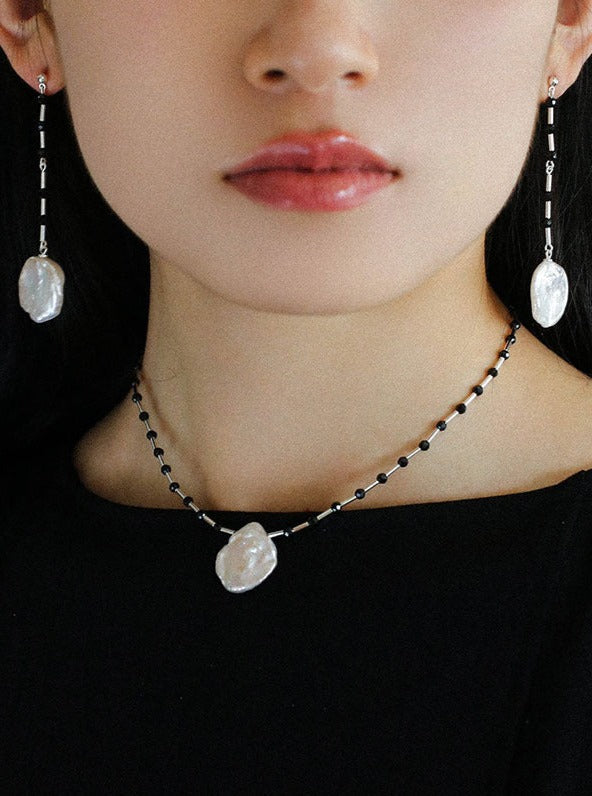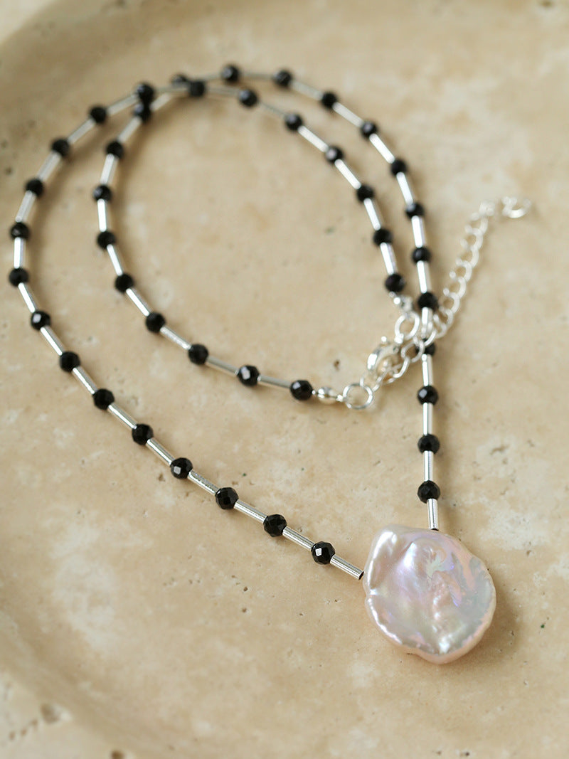 Baroque Pearl/Black Obsidian Pendant Necklace Collection