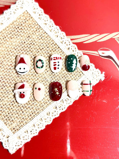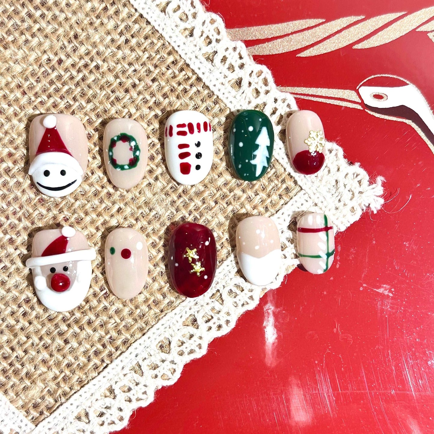 Bring the festive spirit to your fingertips with our Christmas Santa & Christmas Tree Hand-Painted Press-On Nails! Featuring intricate hand-painted designs of Santa Claus, Christmas trees, and other holiday elements, this set is the ultimate accessory for the holiday season.