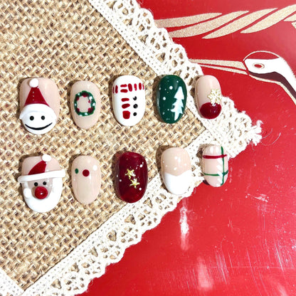 Christmas Santa & Christmas Tree Hand-Painted Press-On Nails