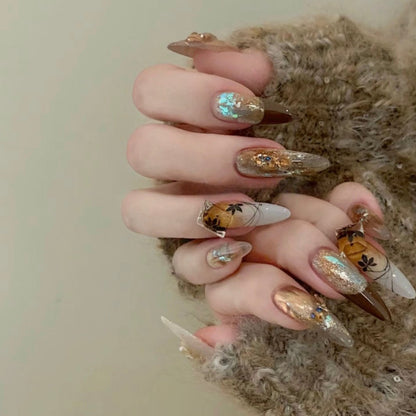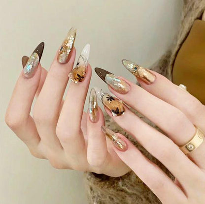 【FALL NAILS】2024 LAST SEASON NEW ARRIVED Golden Brown Autumn Romance Press-On Nails