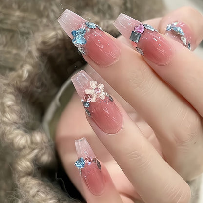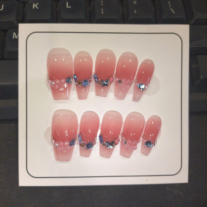 Elevate your nail game with our exquisite handcrafted blush nail art. These wearable nail art pieces are meticulously crafted to embody the essence of pure desire, featuring delicate floral French manicure designs that exude elegance and sophistication.