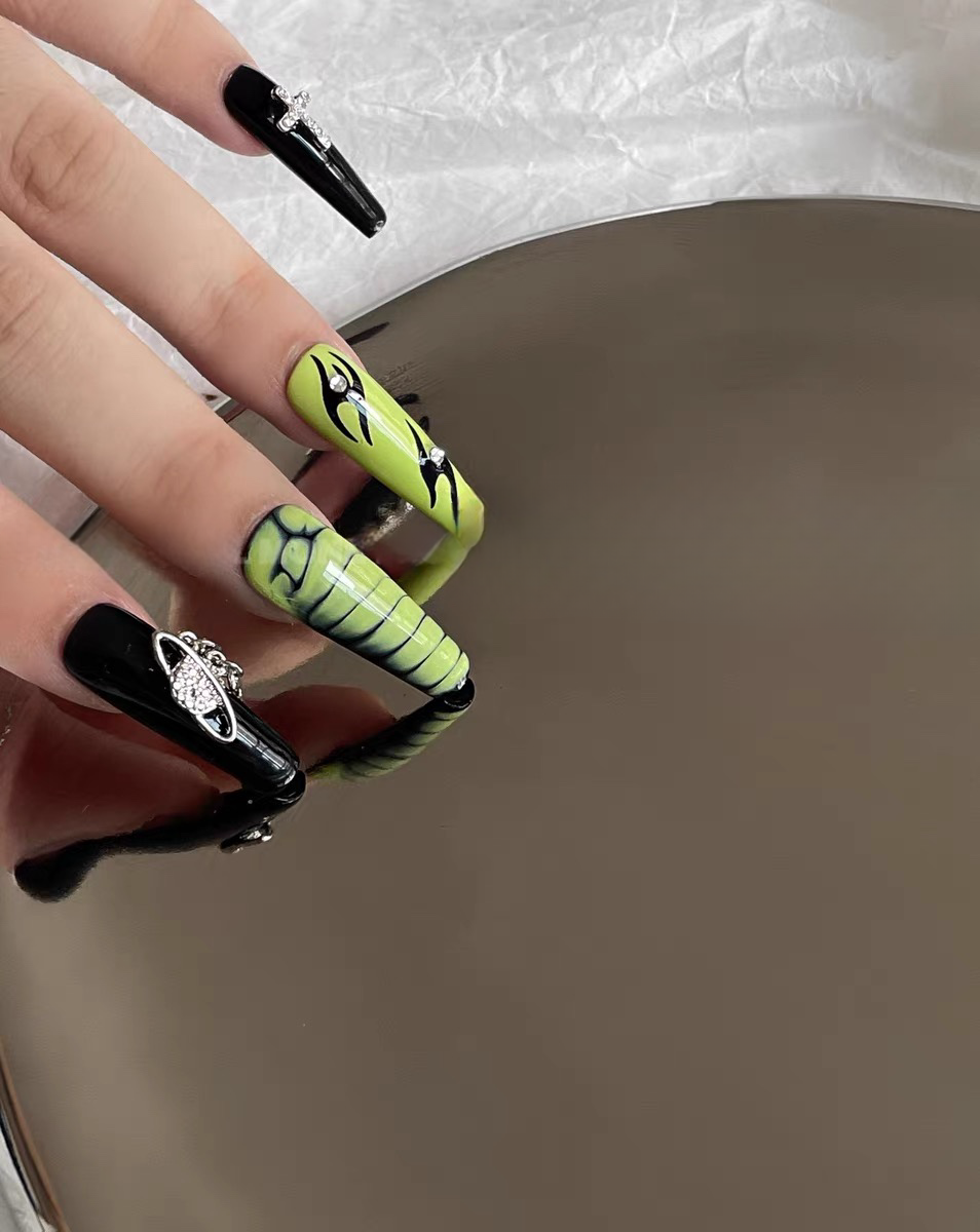 Enter the whimsical domain of the Green Serpent Grove with our unique handcrafted long T-shirt, a fusion of vibrant green hues, serpent-inspired patterns, and the carefree spirit of the Cool Girl. This wearable armor is a testament to individuality and style in the enchanting landscape of the  (Green Apple Paradise).