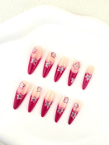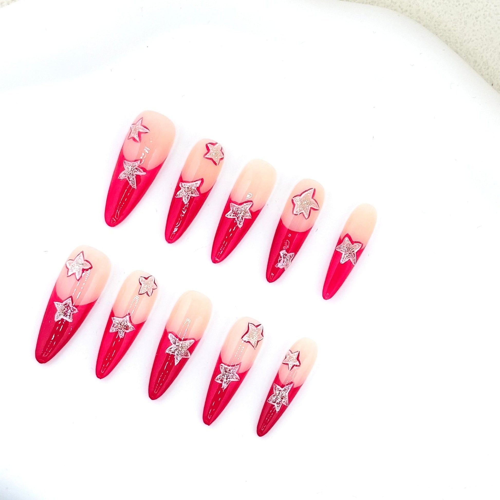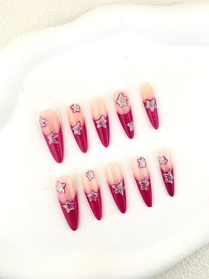 - Celestial Star Design: Each nail is adorned with beautifully hand-painted stars, creating a whimsical and eye-catching look that celebrates the beauty of the cosmos.