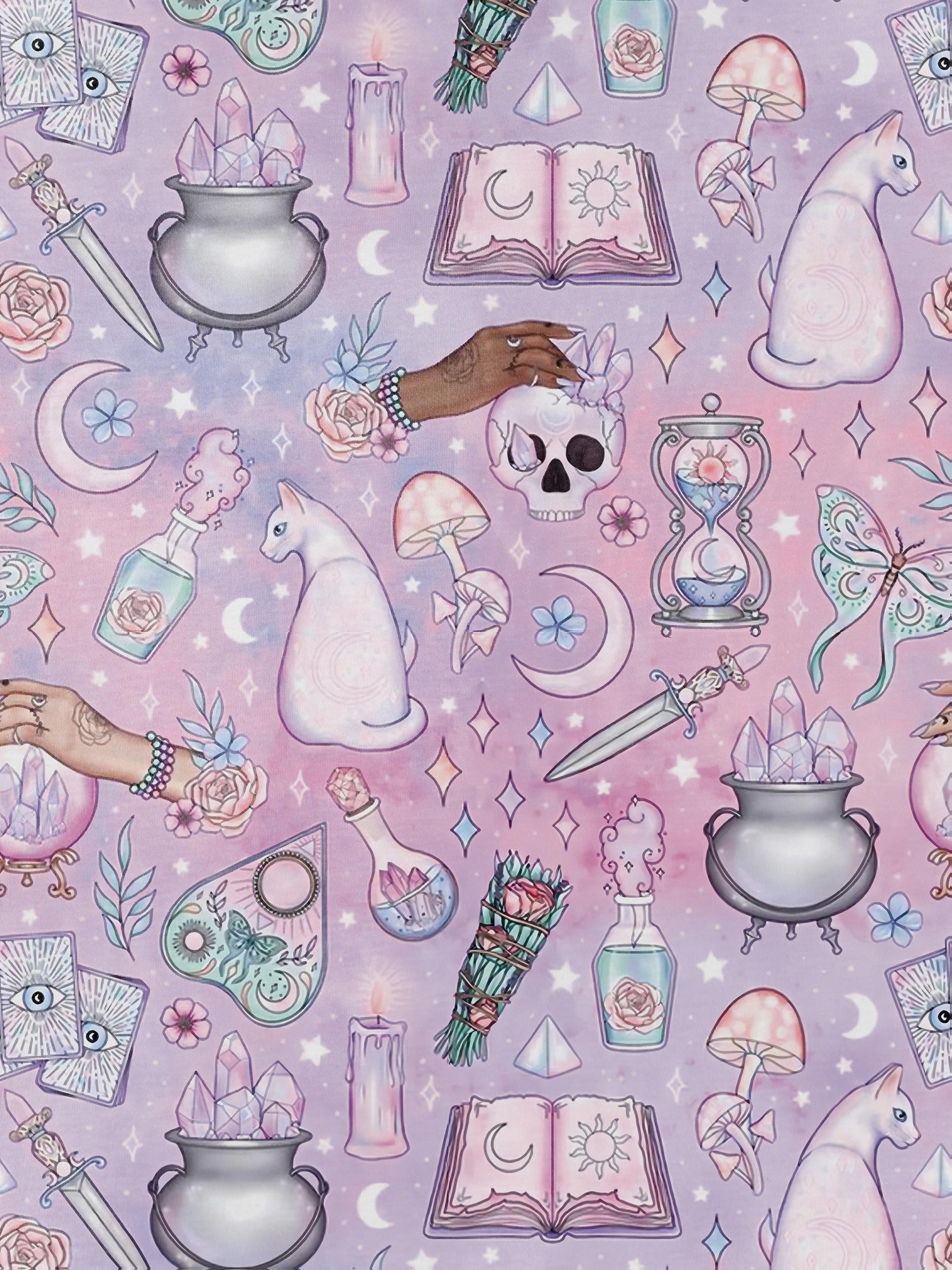 Moonlight Tarot Short Pajama Set — Lavender Mystical Print Short-Sleeve Top & Shorts