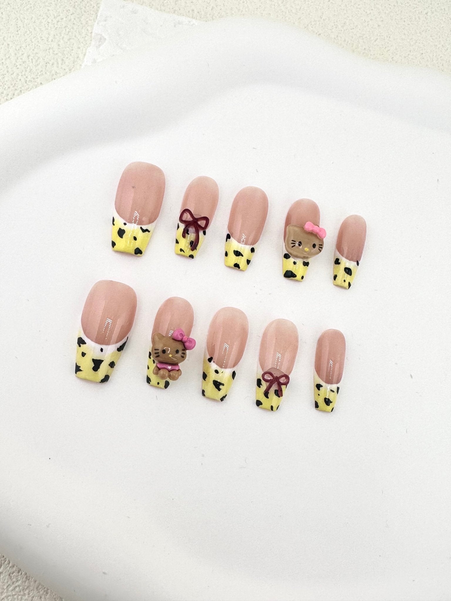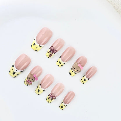 Leopard Bow Kitty Trapezoid Press-On Nails