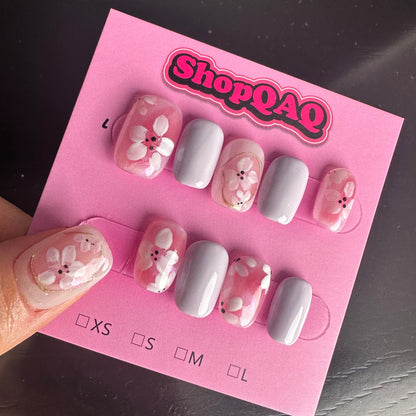 Elevate your nail art with the delicate elegance of our "Purple Blossom" Hand-Carved Press-On Nails. Order now to experience the perfect blend of handcrafted artistry and timeless style.