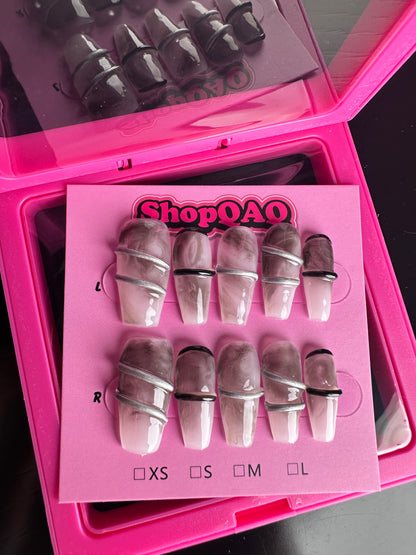 Gothic Ink Smoke Gradient Hand-Painted Embossed Press On Nails – Artistic & Mysterious