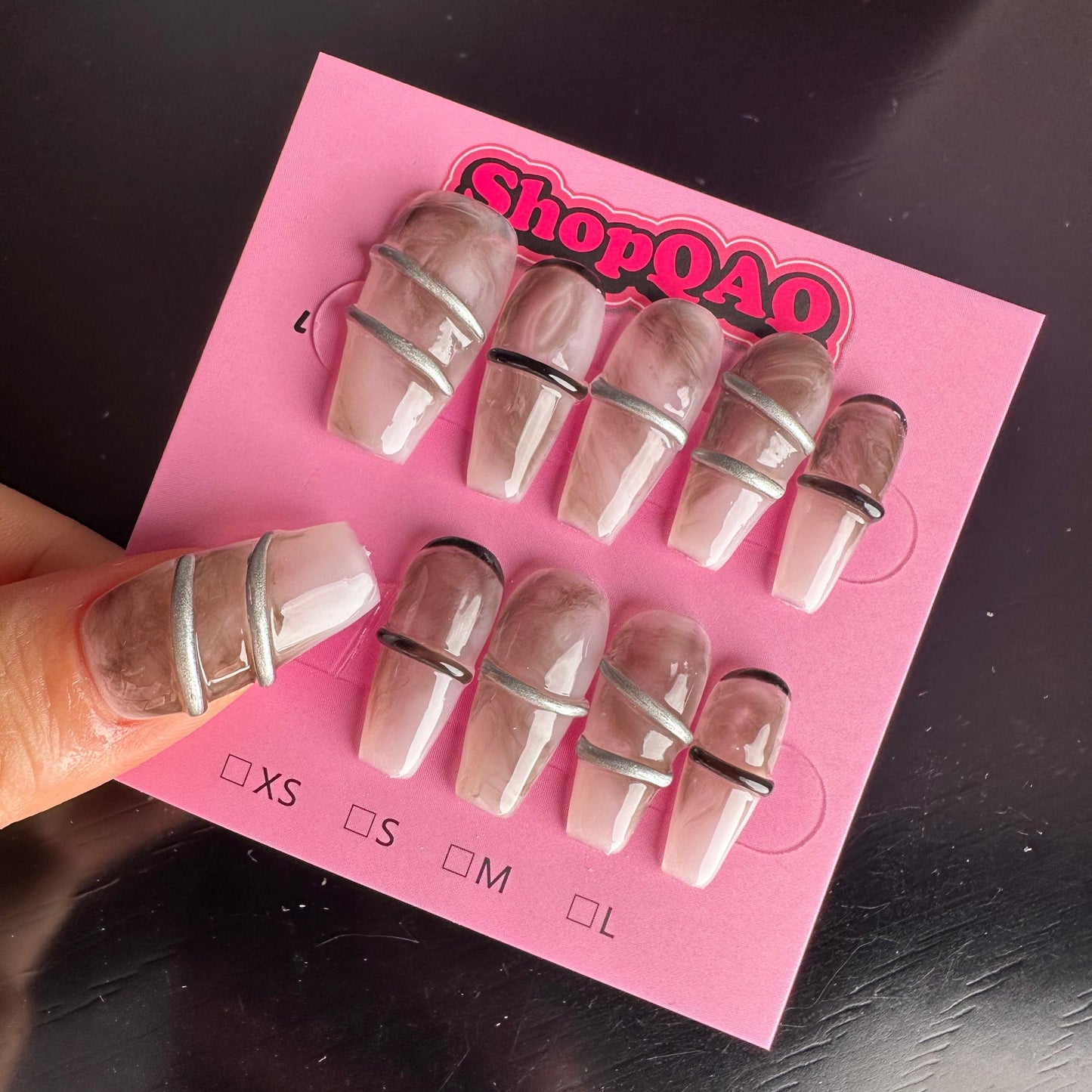 The unique ice translucent finish adds a delicate, ethereal quality, making these nails perfect for those who appreciate understated luxury. Each set is meticulously handcrafted to ensure a perfect fit and long-lasting wear, with a range of sizes included for a customized fit. The easy-to-apply adhesive tabs make application effortless, providing a non-damaging alternative to traditional salon nails. Whether you're looking to elevate your everyday look or add a touch of sophistication for a special occasion, these press on nails offer a salon-quality finish with a graceful, modern twist.